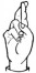 На ћирилици написано ХРАНИМИР ВУКЕЛИЋ састоји се из 15 слова [?]. Исписано ћириличном једноручном азбуком за глувонеме: